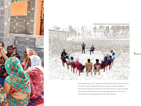 Meeting with farmers on climate smart agriculture practicesThe foundation grew in its operations, staff, and presence for about a decade in the same region, implementing various projects in water management, family life education (later life skills), income enhancement, capacity building, and preventive health education, growing organically before moving on to other states and seeking global partnership opportunities. 15