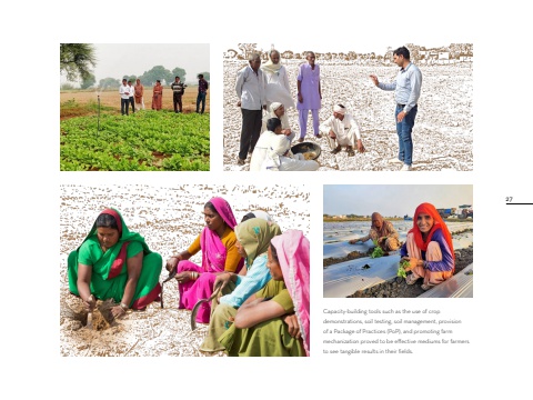 Capacity-building tools such as the use of crop demonstrations, soil testing, soil management, provision of a Package of Practices (PoP), and promoting farm mechanization proved to be effective mediums for farmers to see tangible results in their fields. 27