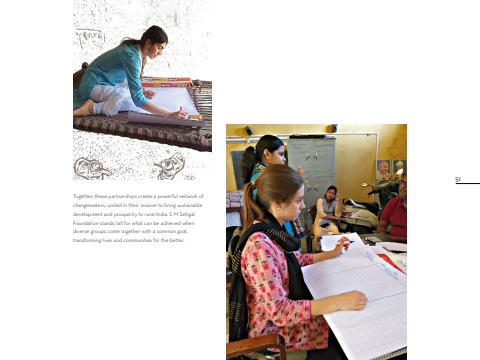 Together, these partnerships create a powerful network of changemakers, united in their mission to bring sustainable development and prosperity to rural India. S M Sehgal Foundation stands tall for what can be achieved when diverse groups come together with a common goal, transforming lives and communities for the better. 51