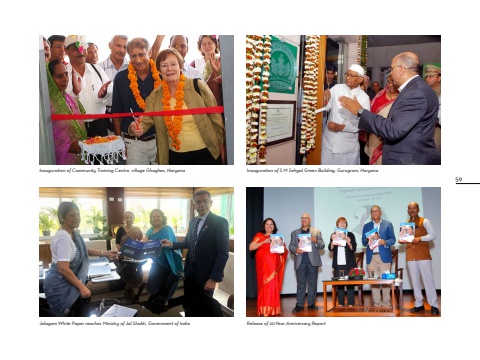 Inauguration of Community Training Centre, village Ghaghas, HaryanaJalagam White Paper reaches Ministry of Jal Shakti, Government of IndiaInauguration of S M Sehgal Green Building, Gurugram, HaryanaRelease of 20-Year Anniversary Report59